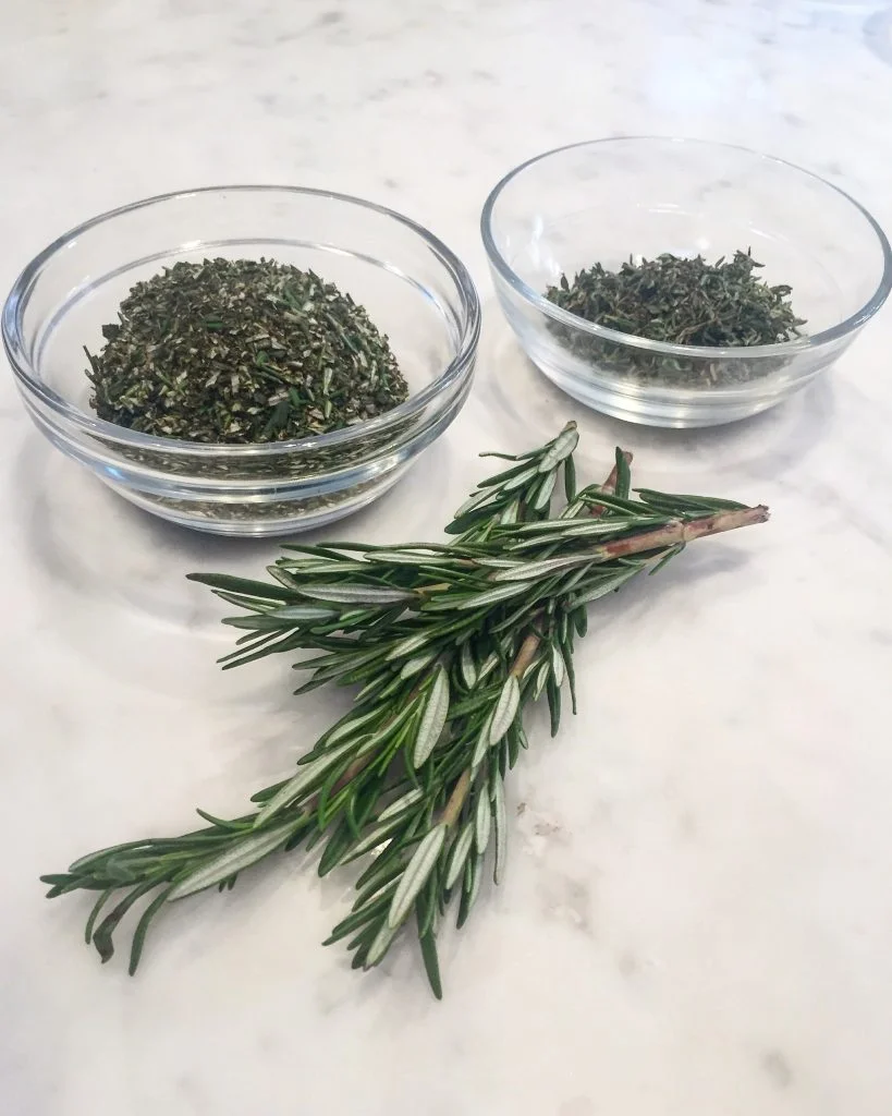 Alongside all of the toppings I always have an array of fresh herbs to sprinkle on top. This really adds robust flavor to you pizzas.