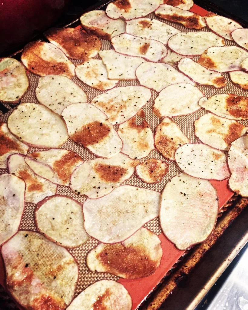These are the baked sliced potatoes for my potato pizzas which is a fave dish in my home. I will be sure to post the recipe for this soon!